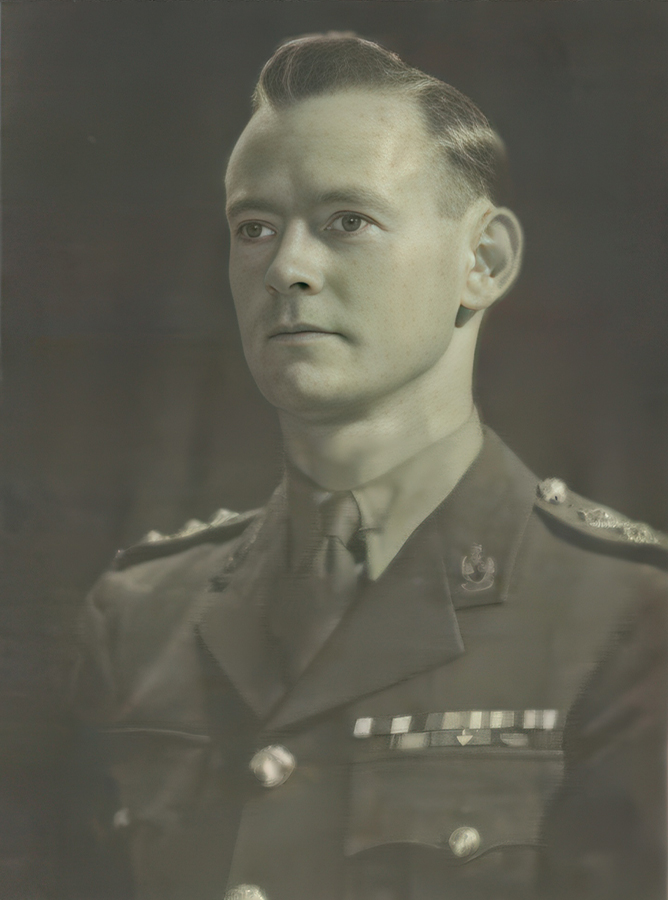 Captain (Capt) John Graham “Jack” Wilkin, MC, served nearly five years with the Royal Canadian Ordnance Corps (Engineering) and its successor, the Royal Canadian Electrical and Mechanical Engineers. A mechanical engineering graduate from the University of Toronto, he was recruited in 1941 to help establish one of Canada’s first armoured division workshops. He served as a maintenance and recovery officer in Canada, England, Italy, Belgium, and the Netherlands during the Second World War. In 1944, as Officer Commanding 53 Light Aid Detachment, he supported the Lord Strathcona’s Horse (Royal Canadians) during the Italian Campaign. His teams repaired tanks, guns, and vehicles under fire, ensuring combat readiness in challenging conditions.